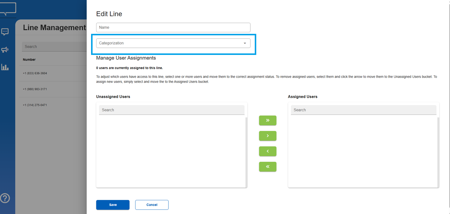 5. The Edit Line window will appear. Change the Categorization of the line using the drop down.